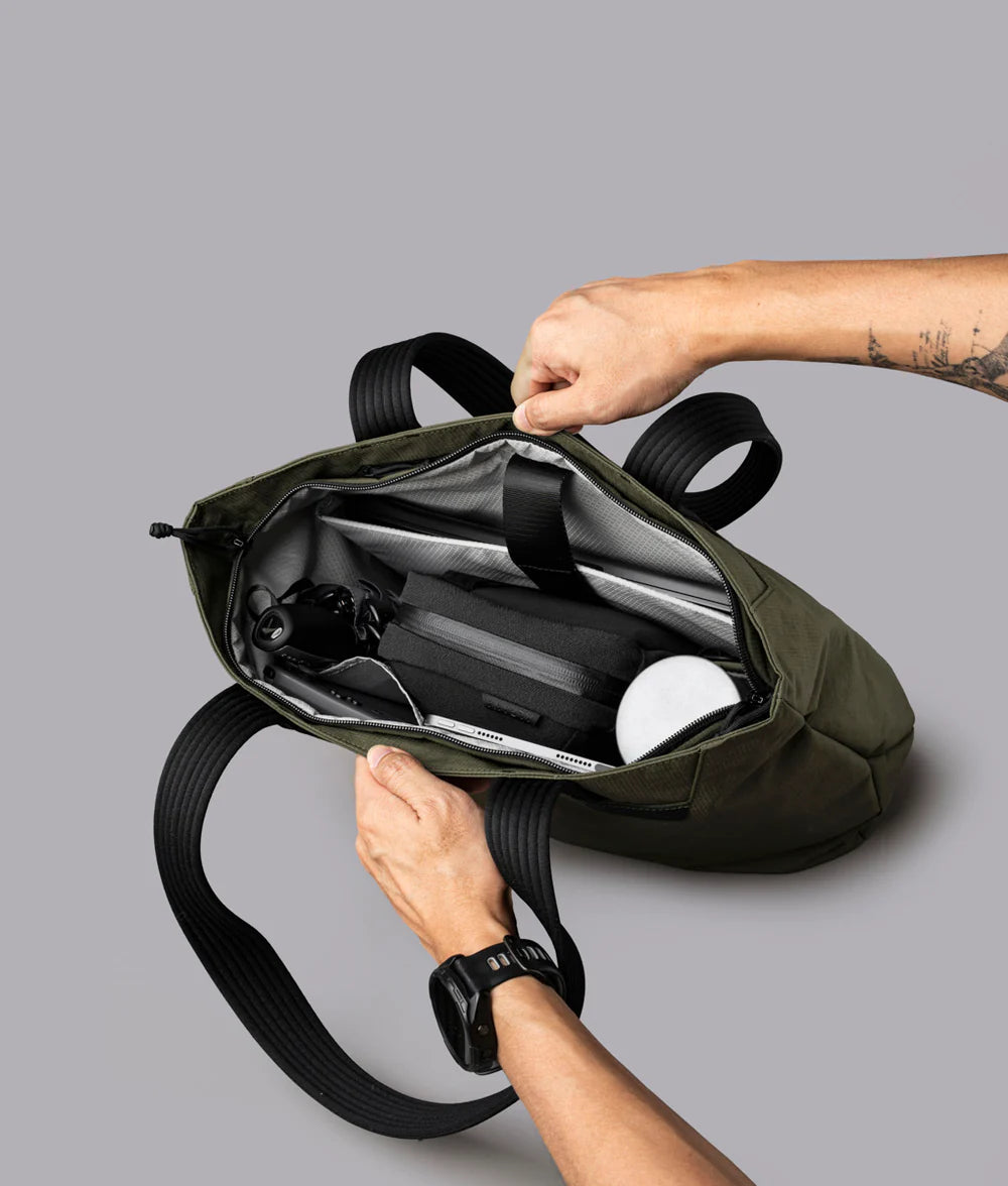 Alpaka Flight Tote 是為通勤與出行而設的全日常用托特袋,提供 M/L 兩個尺寸 選擇,能有條理地收納手提電腦、耳機、文件、手機與水壺等必需品。袋身配備舒適編織肩帶 ,肩負時更貼肩、防滑且更易長時間攜帶;不論由辦公室往返、周末外出,或機場轉乘行程,都可保持俐落外形與實用收納。