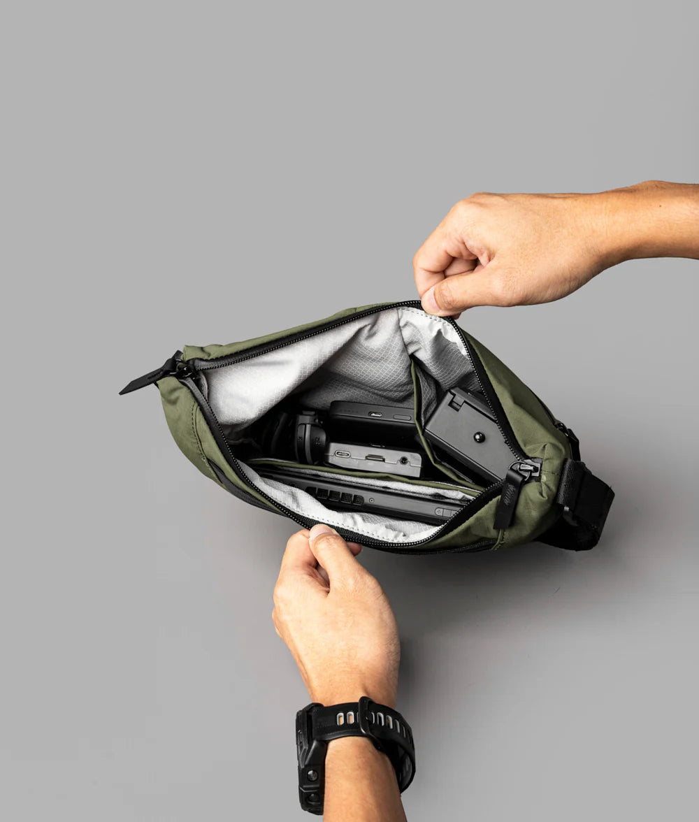 ▲推出全新的靈巧可拆卸肩帶設計。改進的肩帶系統在兩端設有調節點,可以從包的任一側拆下,讓任何一個肩膀都能舒適地佩戴。根據您的反饋,我們取消了磁扣,並採用了我們久經考驗的錶帶機制——這是我們在產品線中成功使用三年多的相同可靠系統。