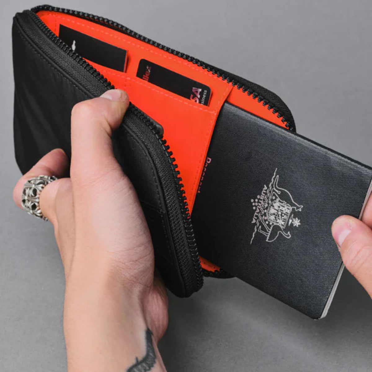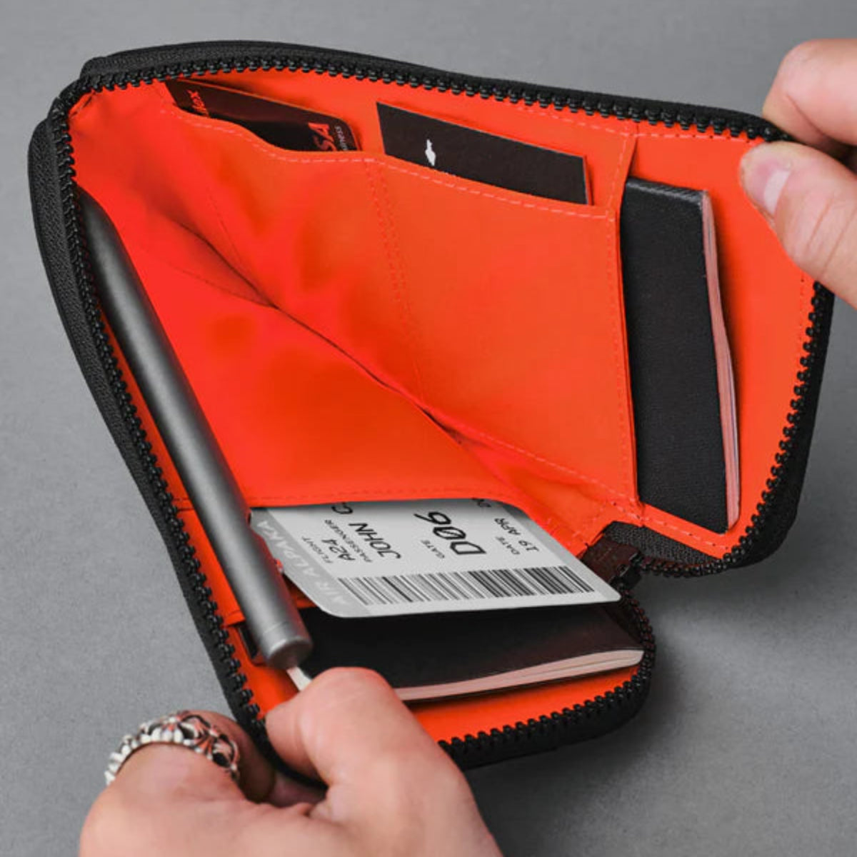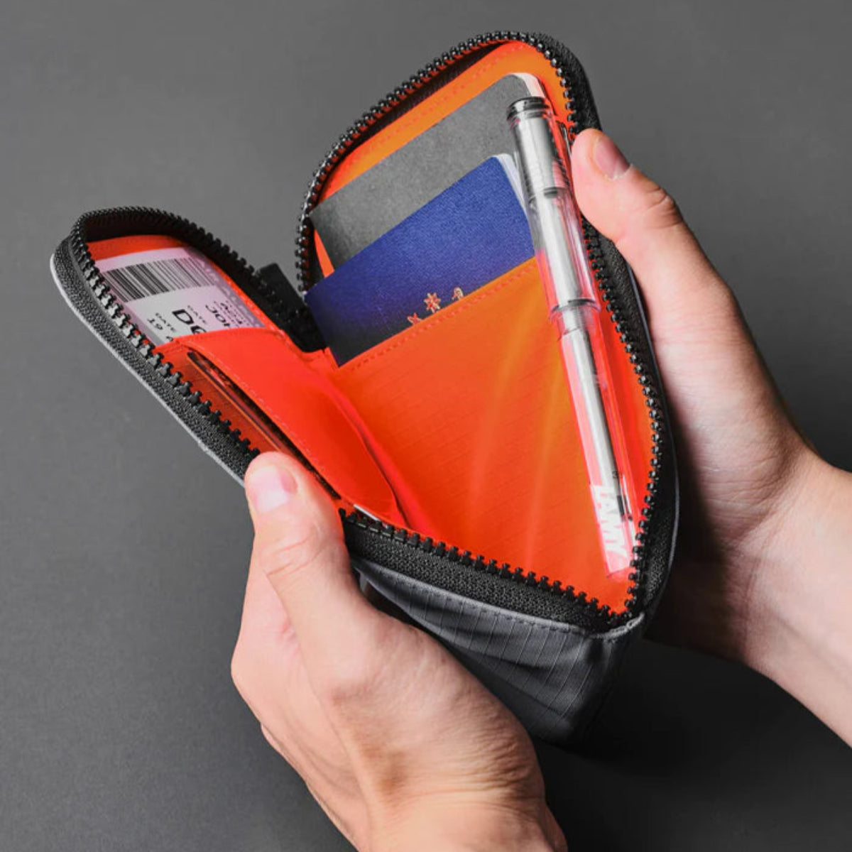 將您的旅行必備品整齊地存放在Zip Travel Wallet中。拉上拉鍊,避免護照、旅行文件和卡片掉落。只需將機票塞入前置的滑動口袋,您就可以隨時準備登機。